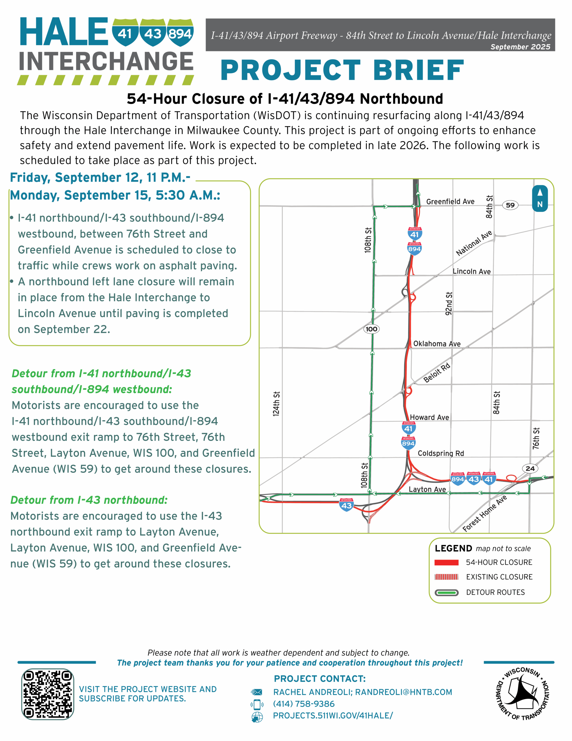 September 25: Second full, directional closure along I-894/43/41 scheduled this weekend