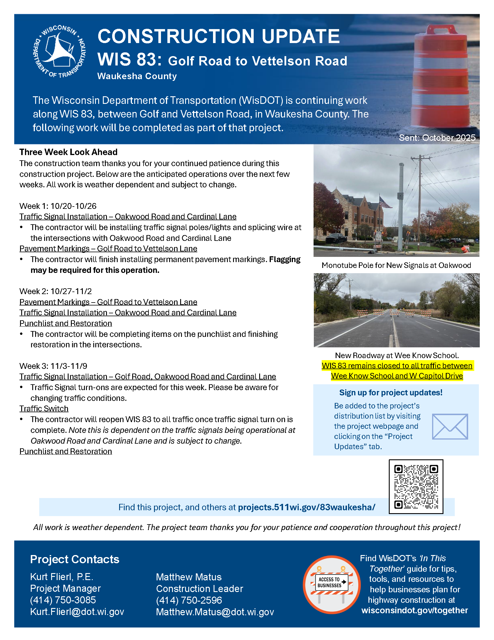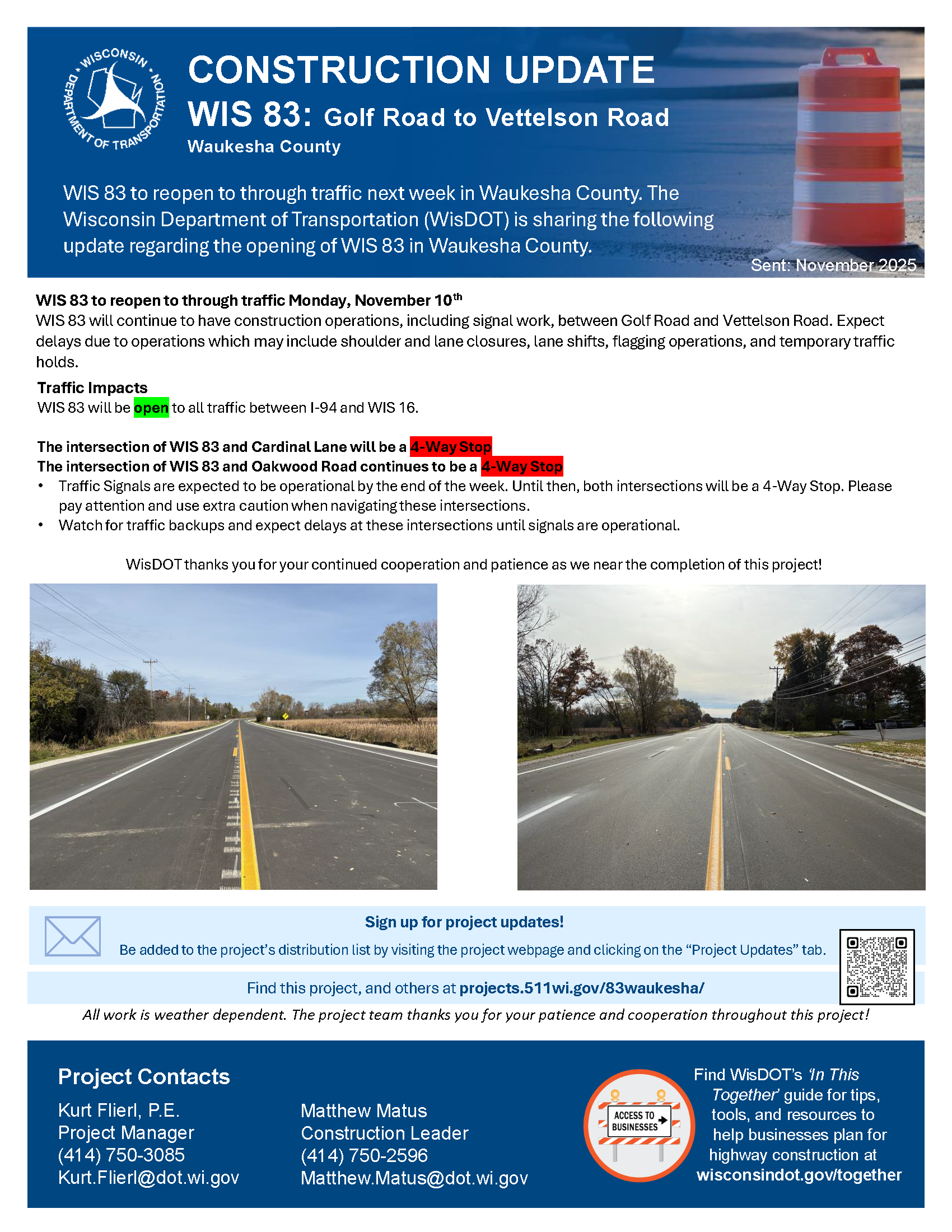 November 6: WIS 83 to reopen to through traffic next week