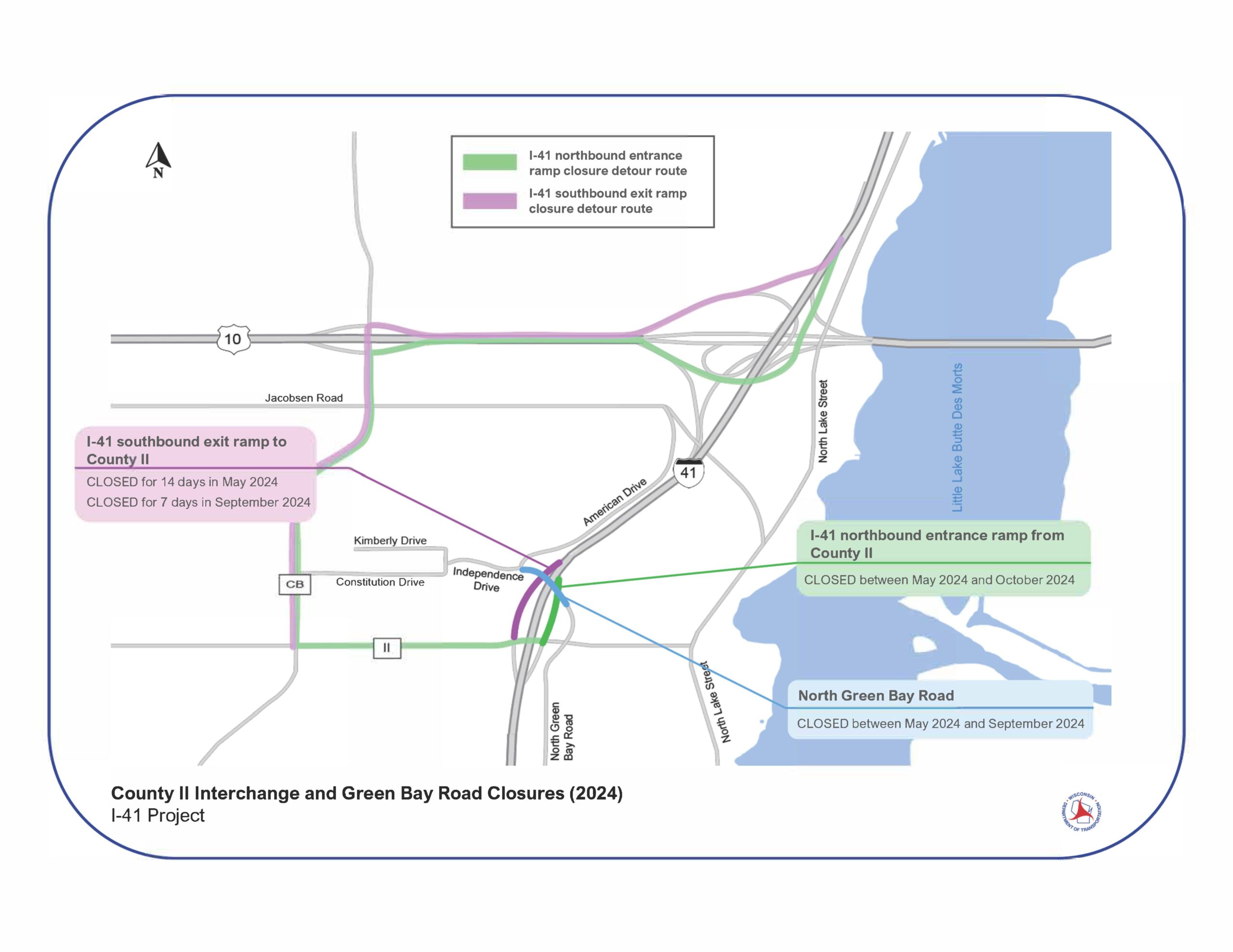 Temporary business signing may be placed during the detoured portion of the project by filling out a WisDOT business signing permit. All temporary business signing needs approval via the permit before placement to ensure it is in a safe location and does not pose a visual distraction or traffic hazard. The temporary business signing permit is free. Costs associated with creating the temporary sign are the responsibility of the business. The permit is available as a fillable-form WORD document or pdf below, or you can request one from the project contacts below.